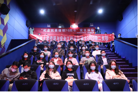 、本科采矿党支部、本科城地党支部、本科安全支部、硕士2020级一支部、硕士2020级二支部、硕士2020级三支部、硕士2019级三支部、博士三支部等多个支部,家湾湘核影院举办“纪念抗美援朝70周年”《金刚川》集体观影主题党日活动。
