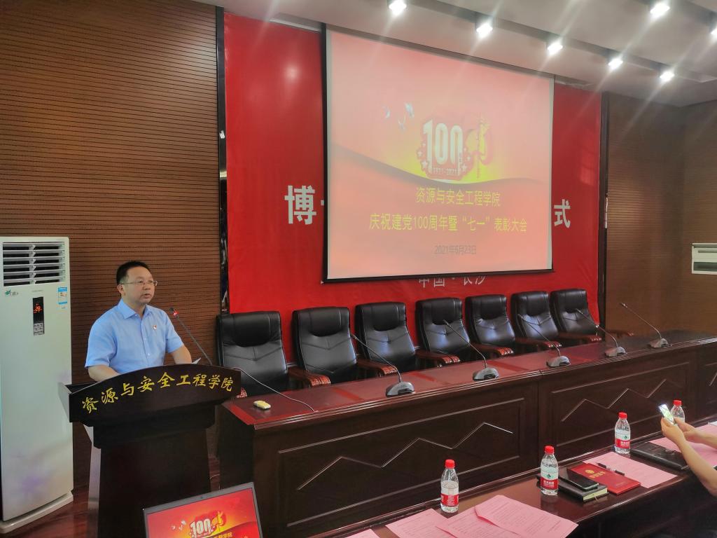 6月23日下午,资源与安全工程学院在采矿楼T302报告厅举行庆祝建党100周年暨“七一”表彰大会。学院领导班子成员、学生党支部委员及全体教职工参会,大会由院党委副书记马国荣主持。