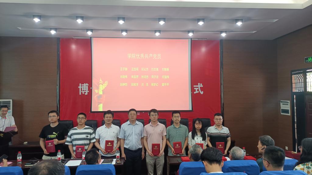 近年来,学院各党支部及广大师生党员履职尽责、兢兢业业,在党建工作引领下,结合实际创造性推进中心工作,充分发挥党支部战斗堡垒作用和党员先锋模范作用,为学院快速发展提供了坚实保障。会上,副院长周子龙宣读学院党委表彰决定,副院长李孜军为光荣加入中国共产党50年的老同志颁发“光荣在党50年”纪念章,副院长李地元、黄锐分别为本次受表彰的学院优秀共产党员,以及党史学习教育主题微党课竞赛获奖者颁发荣誉证书。