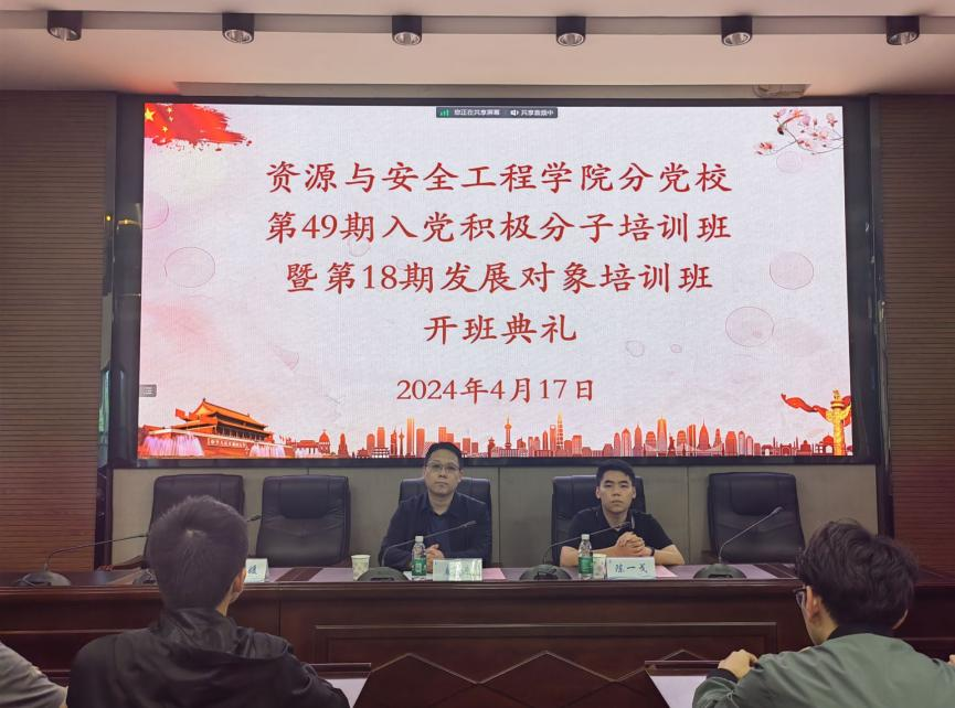 分党校第49期入党积极分子暨第18期发展对象培训班开班典礼在采矿楼T302会议室举行,院党委书记、分党校校长秦进教授出席,分党校培训班导师陈一戈及180余名学员参加,开班典礼由李沁媛老师主持。
