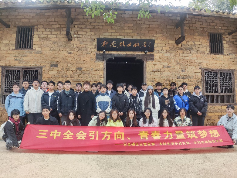 为深入学习贯彻党的二十届三中全会精神,进一步激发青年党员的爱国热情和历史责任感,安全硕士三支部、本科生安全党支部、本科生城地党支部一行人于2024124日前往郭亮故居、铜官窑开展党日活动。