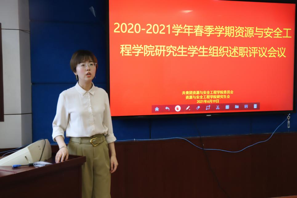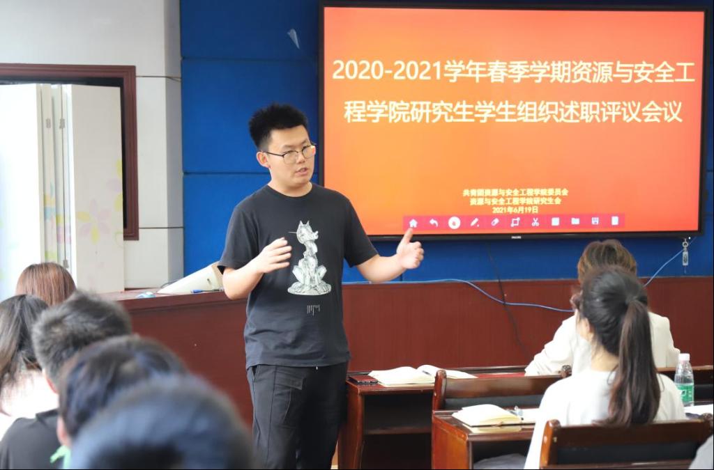 为保障我院研究生学生组织工作有序进行,更好地贯彻落实中南精神,我院于2021年6月19日下午15时在采矿楼224会议室组织开展本学期研究生学生组织述职评议会议,旨在全面了解和监督研究生学生组织本学期的学生工作,以促进学院各方面建设。参与本次会议并进行述职的学生组织有资安院研究生会、朋辈心理互助会研究生部、新媒体中心研究生部、研究生双创实践部,共青团91网