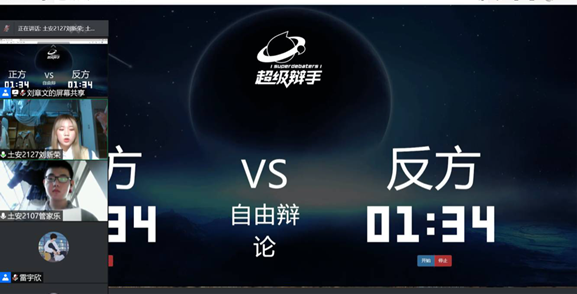 于11月6日15:00举行了辩论队招新赛。本次招新赛以线上的方式进行并由辩论队队长王亚芳同学以及毛赛同学、菅昊同学和李瑞圆同学担任评委。