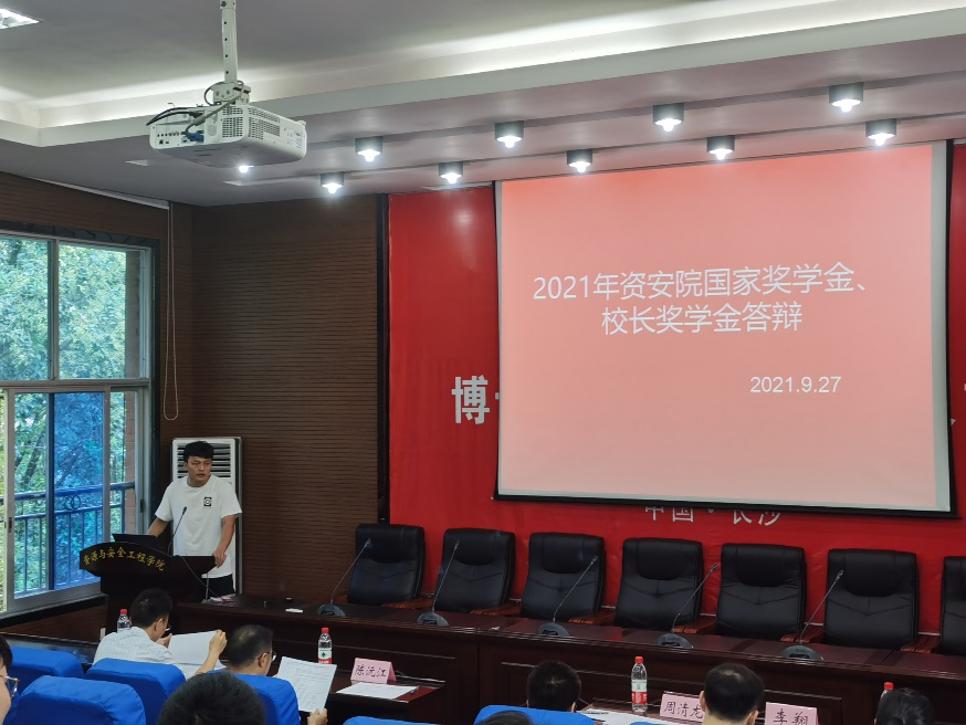 在采矿楼T301、T302开展2021年研究生国家奖学金及校长奖学金答辩会暨优秀学子风采展示会,李孜军副院长莅临现场进行工作指导,陈沅江、过江、高峰、李帅、杨珊、黄麟淇、李翔、周清龙、李明、梁伟章共计10位老师担任本次答辩会评委。