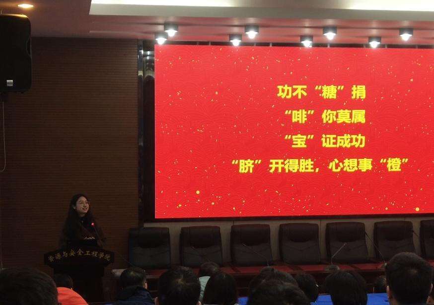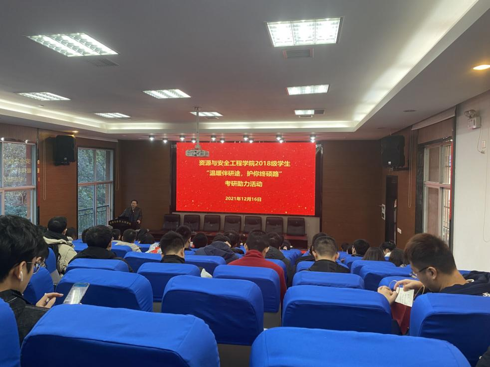 于采矿楼302会议室开展了2018级学生“温暖伴研途,护你终硕路”考研助力活动,资安院党委副书记马国荣、副院长黄锐、采矿1802班班导师王少峰、城地1802班班导师黄麟淇出席了本次活动,本科2018级考研学生参加,由本科2018级辅导员肖陆伟老师主持活动。