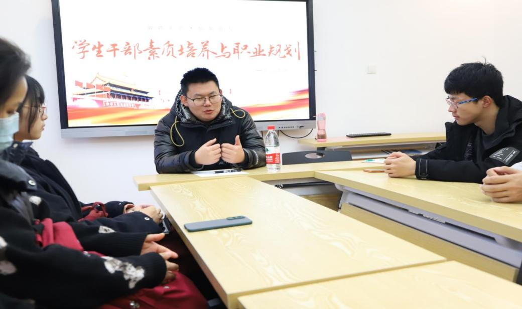 团课伊始,孙瀚老师引导同学们开展思考“学生骨干综合素质提升的具体表现是什么?”带着这样的问题,孙瀚老师提出一名优秀的学生骨干应该具有的四点素质——始终牢记初心、经常反思总结、具有高度的责任意识以及具有良好的心态和抗压能力。随后,孙瀚老师针对四点基本素质进行举例讲解,与会成员积极回答孙瀚老师提出的问题,发表自己对统筹规划的认识,会场气氛轻松活跃。他鼓舞各位学生骨干努力提升自身能力、争取早日成为一名优秀的学生干部,此次主题团课落下帷幕。
