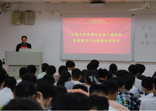 紧接着,我院党委副书记马国荣老师做出讲话。他表示:新的形势也提出新的要求,希望新一届院团委委员会以及学生会(研究生会)主席团能够在以往成功的经验上开拓创新、强化服务意识,带领全院团员进一步坚定理想信念,强化学习意识、加强学风建设。