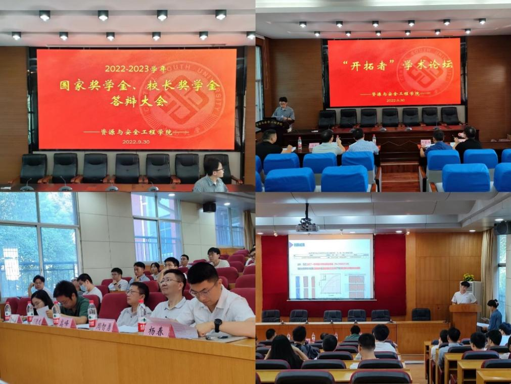的学风建设,激励广大研究生勤于科研学习,我院于9月30日于采矿楼T301、T302举办“开拓者”学术论坛暨研究生国家奖学金及校长奖学金答辩。本次活动邀请到我院高峰、周智勇、周清龙、杨春、常方蓉、彭述权、刘琼、邱贤阳、冯岩、刘恺等10位专家学者担任评委,先后38位同学进行了成果展示和现场答辩。