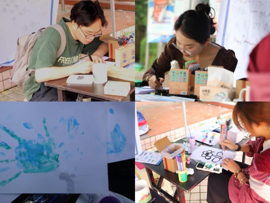 本次活动精心策划了“留下你的手印”“写给未来的自己”“故地重游”“季忆留夏,感恩有你”等四个环节。活动伊始,就吸引了众多同学积极参与,现场气氛热烈。在“留下你的手印”环节,同学们可选择喜欢的颜色,涂印并装饰手掌印记,在旁签上姓名,便形成了独一无二的画作;而在“写给未来的自己”环节,同学们可以现场写信并设置邮寄时间与地址,让信件与未来的自己相遇;在“故地重游”环节,同学们可自主选择自己与朋友的校园合照,通过与朋友一起重游校园、重拍照片,感受时光流逝、追忆美好青春。此外,“季忆留夏,感恩有你”环节也大受欢迎,许多同学在明信片上留下了自己的毕业寄语,这些寄语如同五彩斑斓的记忆,记录着他们在大学的点点滴滴。