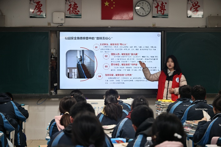 活动前期,学院青志协面向全院招募12名志愿者,经专项培训与试讲考核后,分为3支宣讲小队,分别进入高一3个班级开展授课。宣讲内容紧扣总体国家安全观、雷锋精神两大核心,通过案例讲解、影像播放、情景闯关、知识快问快答等互动形式,让安全知识入脑入心。志愿者们结合长沙护学岗、校园爱心帮扶等真实案例,讲述新时代雷锋精神的实践内涵;围绕全民国家安全教育日,普及网络安全、文化安全、校园防范等知识,引导同学们树立“国家安全,人人有责”的意识。