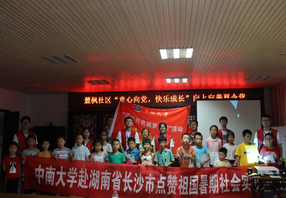 赴湖南省长沙市点赞祖国暑期社会实践团在长沙市岳麓区岳麓街道麓枫社区开展了“童心向党,快乐成长”主题宣讲活动。宣讲活动主要面向长沙市岳麓区岳麓街道麓枫社区的青少年开展。