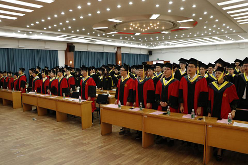 学位授予环节,学院教师们依次为2019届本科毕业生授予学士学位,并合影留念。