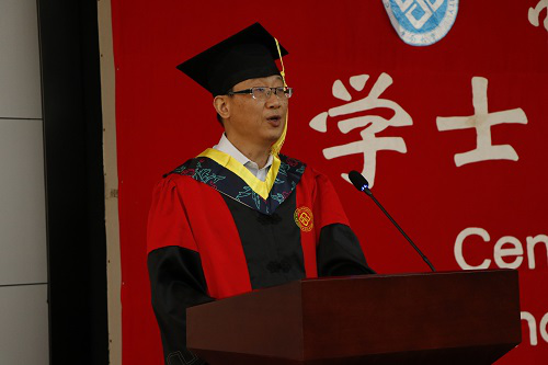 欧旭理书记首先宣读了2019届本科优秀毕业生评优名单,并为2019届湖南省优秀毕业生和湖南省创新创业优秀毕业生获得者颁发荣誉证书。黄锐副院长宣读了学士学位授予学生名单。罗周全院长发表致辞,代表学院全体教师,向2019届本科毕业生们表示衷心的祝贺,并向同学们提出四点希望和要求:一是希望大家胸怀大志,志存高远;掌握真才实学,努力成为可堪大用、能担重任的栋梁之材。二是希望大家踏实肯干,勇担重任;善于挑战极限,行稳致远,在平凡中工作做出不平凡的事业。三是希望大家大胆创新,突破极限;坚持创新、始终创新,实现自我突破和发展。四是希望大家严于律己,慎独慎微;培养和强化自我约束、自我控制的意识和能力,永葆一颗赤子之心。