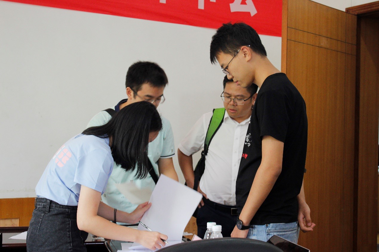 9月8日上午8点,采矿楼222迎来了第一位“小鲜肉”。展板签到、身份核验、办理注册、领取入学材料,只需要短短二十米的距离,两分钟的时间内,一名研究生新生的报到注册便能顺利完成。在完成报到注册后,工作人员会为每一名新同学送上一个资料袋。资料袋并不大,却装满了新生入学所需的一切资料:研究生手册、新生安全手册、校徽、院服……从线上统计院服尺寸,到领取新生资料、整理、分装,新同学们“一站式”快捷报到的背后,是学院老师、研究生会同学和研办助理们烈日下的东奔西走和精心准备,它满含着我院师生对2018级研究生新生的期待与祝福。