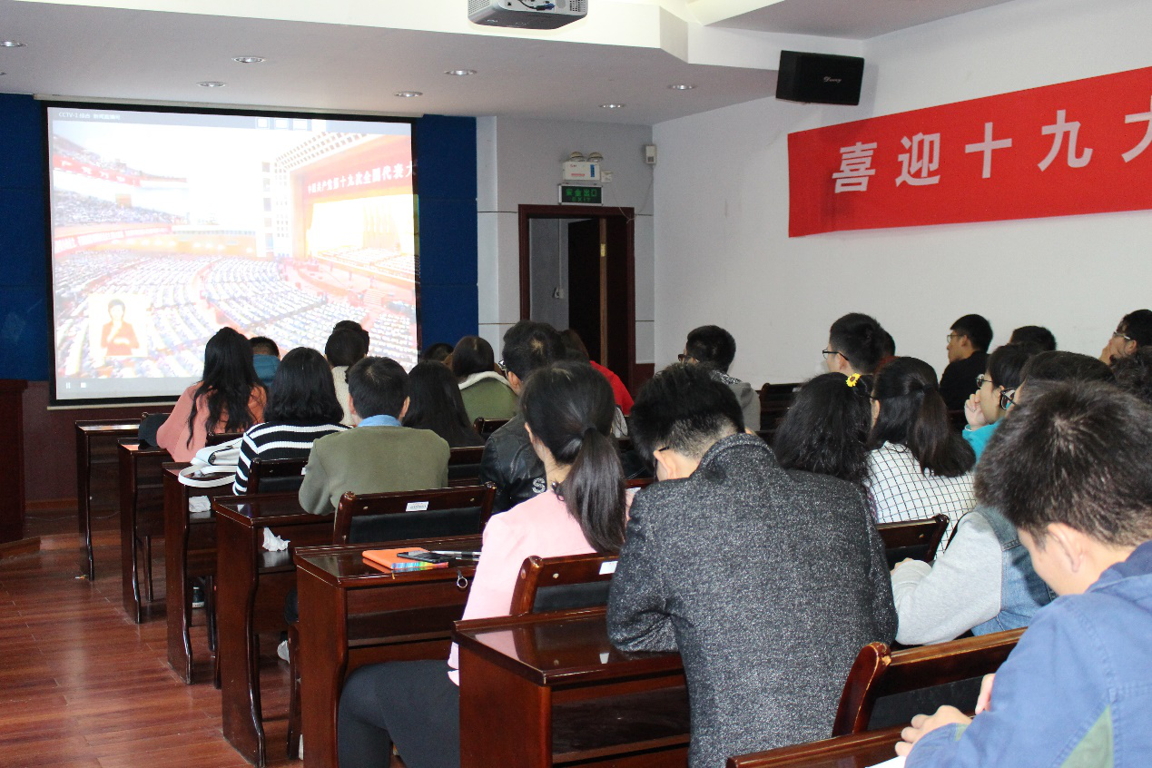 为全面了解“十九大”实况,及时领会“十九大”精神,深入学习党的政策方针,加强广大学生的党性修养,在院党委组织带领下,资安院于2017年10月18日上午9:00组织我院部分本科生及研究生在采矿楼222、224会议室集中观看了“中国共产党第十九次全国代表大会”开幕会直播。我院各级领导及教职工参与了本次活动。