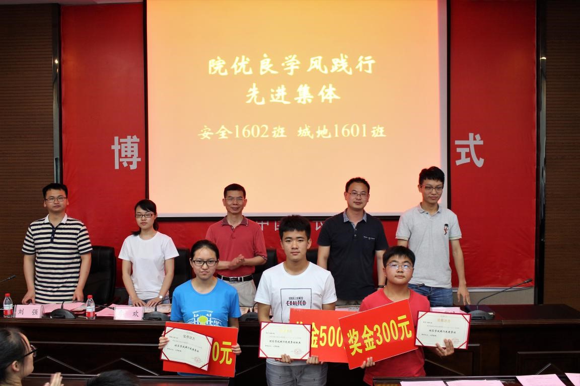 2016-2017年度青春向学先进集体和个人表彰大会在采矿楼302报告厅隆重举行。资安院党委副书记孙胜老师、学工办主任李欢老师、研究生辅导员于谦老师,13级辅导员刘强老师、16级辅导员侯霄峰老师以及获奖集体、个人代表与学生干部参加了本次大会。