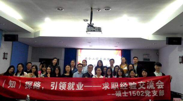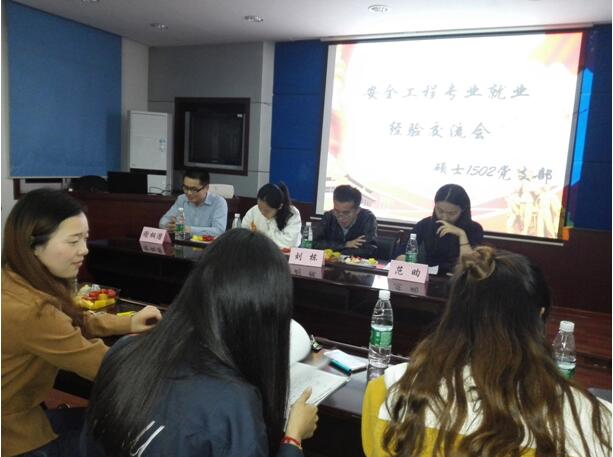 硕士1502党支部在采矿楼224举办了毕业研究生求职经验交流会。此次交流会由党支部李小庆同志主持,毕业生刘栋、谢榈潜、靳颜宁、范昀分别从选调生经验分享、求职准备、职业规划等多个方面为到场的40余名同学进行了精彩的介绍。