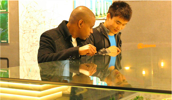 上午九点,留学生们从校本部出发,经半个小时车程后抵达目的地。留学生们首先参观了长沙市规划展示馆,他们在现代化的先进科技带领下畅游长沙全城。屏幕上光影变换,展现着长沙的历史变迁,巨大发展。同时,馆内逼真的人物蜡像更是吸引了留学生们的目光。当整个长沙地区的沙盘图展现在留学生们眼前时,面对全长沙的风貌,留学生们不禁为之侧目,啧啧称奇。“原来两地相距这么远,平常没有感觉,在地图上才发现简直跨越半个市了!”来自蒙古的留学生贾高同学指着地图上91网
