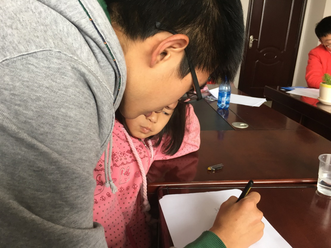 课堂第一环节,流动儿童课程辅导。将参加该项目的流动儿童分为四组,每一名志愿者辅导三个孩子。开课之前,志愿团队联系好了家长,向他们交接好了课程安排,并且利用周末给社区可爱的孩子们作业辅导。为了提高他们的学习兴趣,志愿团队设置了比赛答题环节,在志愿者们的悉心辅导下,孩子们学习氛围浓烈,专注学习,疑惑难题被一一破解,孩子们都开心的度过了美好的第一课。