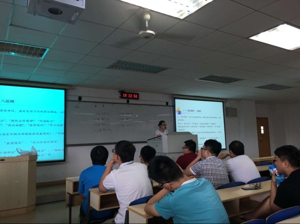 会议伊始,在主持人进行了简单的开场介绍之后,老师们就上台开始为大家讲解。首先孙书记对近五年的我院本科生就业情况、就业单位、签约地区等方面做了详细的分析,并介绍了各个专业2017届毕业生的毕业去向以及就业单位特点,重点介绍了2017届毕业生的就业形势及特点,以及大四学年与毕业及就业相关工作的重要时间节点和工作安排,另外,他也对求职详细流程和注意事项做了详尽的介绍。