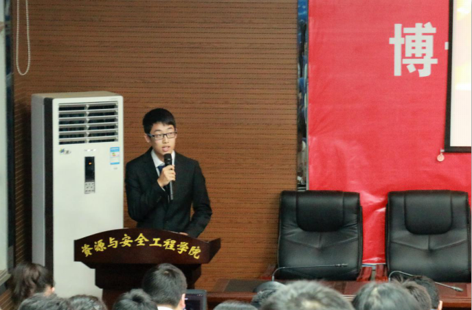 随后,院学生会主席王天驰同学也进行了学生年度工作汇报。他主要对我院学生会这一年取得的成绩和开展的各项工作进行了汇报,对我院学生会组织开展的一系列校园文化活动,例如五院联合风采大赛、无手机课堂、文明寝室建设、毕业生欢送晚会等活动给予了高度的评价。在他进行完工作汇报之后,我院新一届团委学生会主席换届选举正式开始。