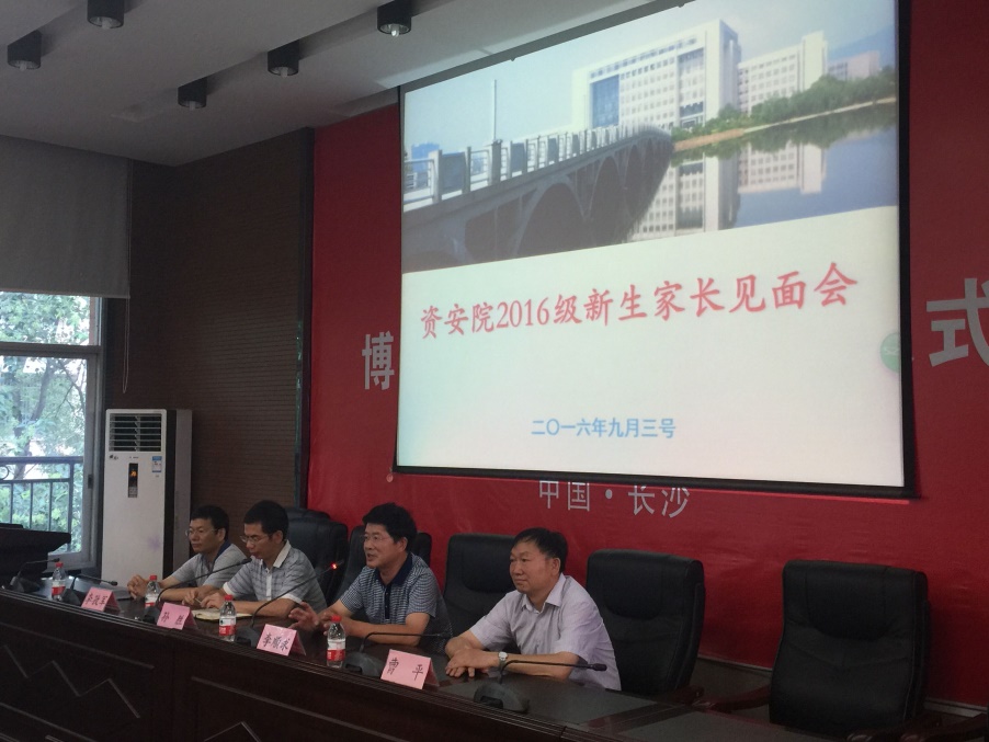 2016级新生家长会在采矿楼302报告厅召开。学院党委李顺求书记、孙胜副书记,副院长曹平教授、李孜军教授,学工办各位老师以及2016级学生家长参加了本次会议。