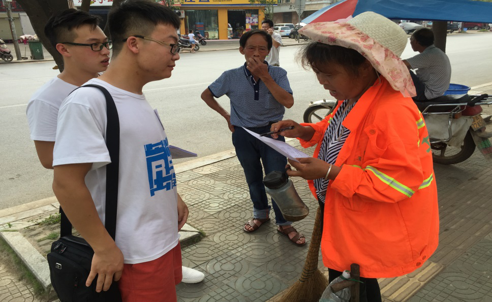 南校区淹鱼塘公交车站出发乘坐公交车,历时近2h的辗转,经过几名好心路人的指引下终于到达了雷锋镇。到达雷锋镇后,同学们片刻没有歇息的开展了前期调研工作,通过对雷锋镇各行各业居民,如商店主、清洁工人、农民等发放问卷调查与咨询了解,我们大致掌握了雷锋镇居民的文化生活与物质生活状况,随后,我们采访了雷锋镇街道办事处社会事务办文化专干萧主任,了解了雷锋镇的人口数量、居民生活水平、居民文化生化、民间文化艺术等问题。并且协商确定好了巡演的确切时间与地点。
