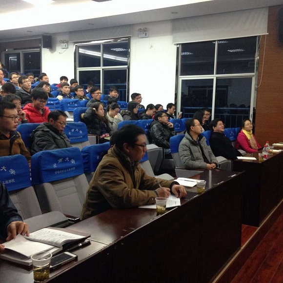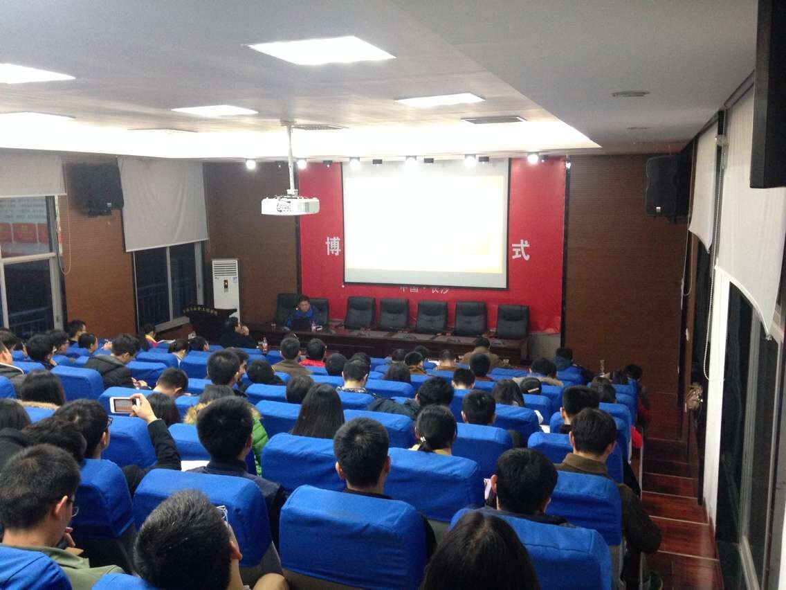 最后,周院长从十三五规划宏观背景以及总体展望两个主题详细解读了十八届五中全会的相关精神。他为师生们耐心介绍了学院内涵发展的理念和内容。指出在国家大力实施创新驱动发展战略的发展大环境下学院总体上保持乐观,但依然面临一些挑战。所以学院将把工作重心放在学科建设、师资队伍建设、学生培养、以及条件建设、国际交流方面。通过“积极、空杯、感恩、包容,老板”五种心态的塑造,建设和谐学院。