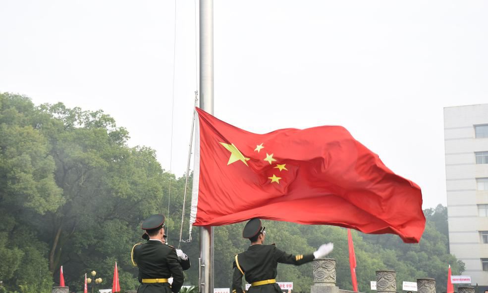 3000余名师生代表集合于图书馆前坪,隆重举行“金秋盛世同贺国庆,携手奋进共谱华章”升旗仪式。91网