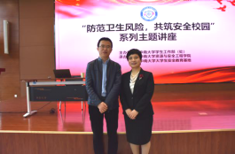 易险峰副部长致开幕辞。他表示,学校一直以来高度重视学生安全教育工作,结合我校国家级特色专业安全工程,连续12年开展具有中南特色的安全文化活动,切切实实地让“安全”走近师生、融入校园。他向在座师生提出三点希望:一要大力践行安全观;二要积极助力疫情防控;三要将卫生安全活动落到实处。