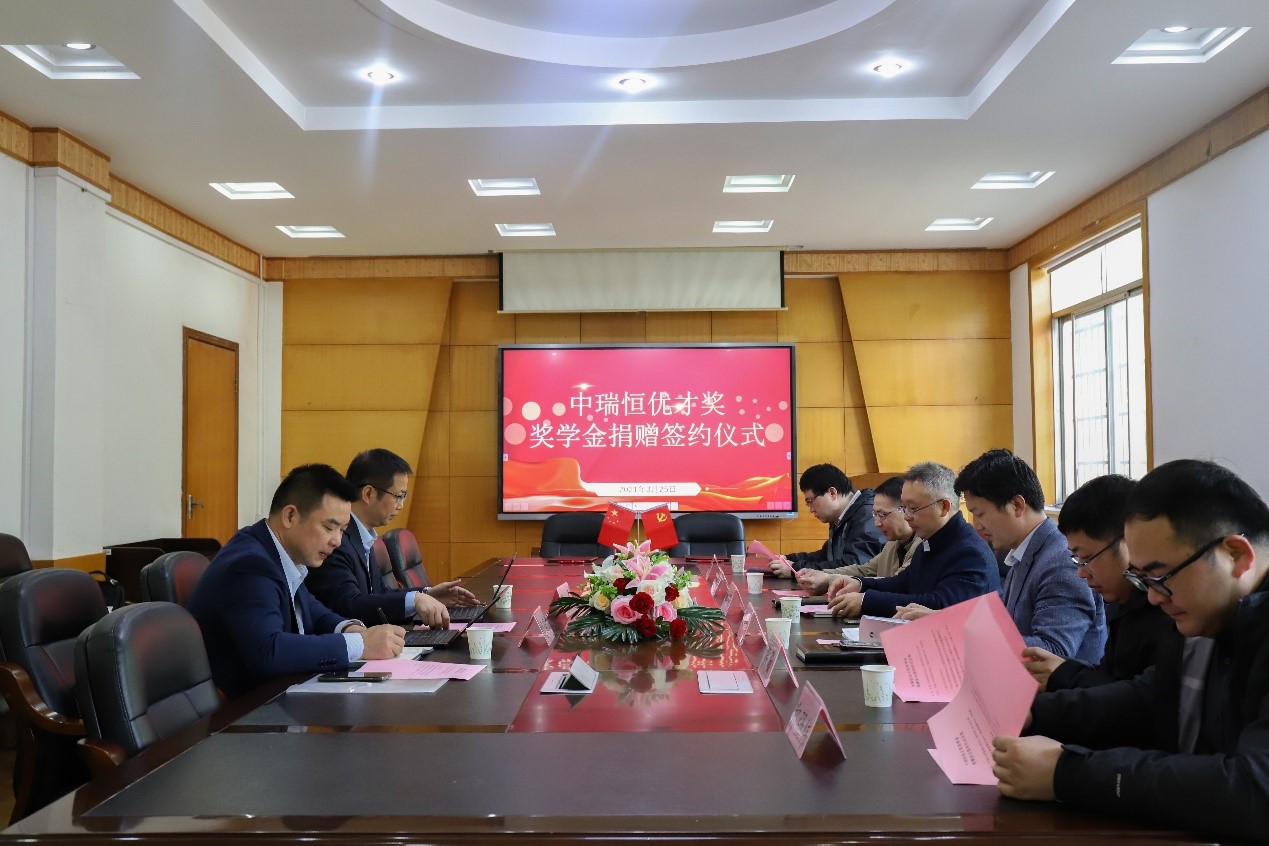 欧旭理与李东共同签署捐赠协议。随后,李东从发展历程、企业定位、服务内容、企业优势等方面介绍中瑞恒管理策划有限公司,并代表公司表示为培养高素质安全专业人才,鼓励优秀学子,共同推动教育事业的发展,设立中瑞恒优才奖奖学金,希望能达成长期战略合作关系。他认为高校在人才培养和教育资源方面存在优势,但人才的实际训练和操作经验稍有欠缺,校企合作能共同创造机会,实现互利互赢。接着,副院长周子龙感谢了中瑞恒管理策划有限公司对教育事业的关怀,并表达了与中瑞恒管理策划有限公司合作的荣幸。他从专业发展和专业特色方面介绍91网