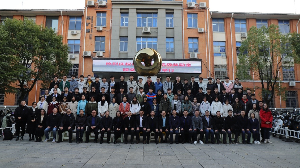 2021年度奖励金评选结果的通知》,张忠生秘书长、设奖企业代表和院领导共同为获奖学生颁奖。