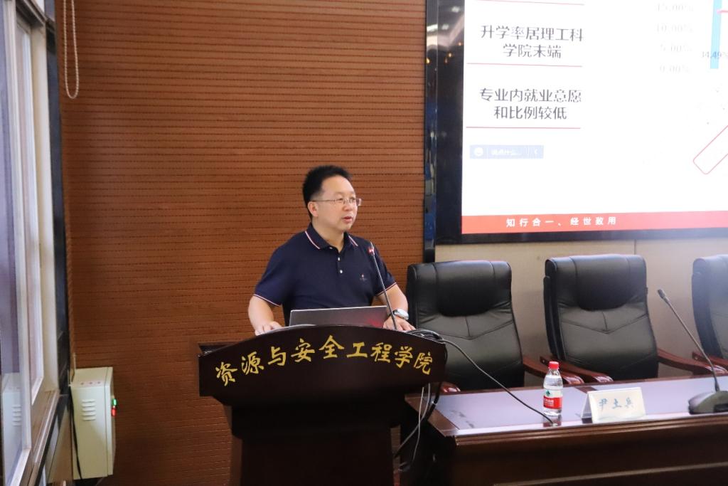 欧旭理书记首先从学风建设、毕业生就业率、升学率、就业意愿等方面分享了自己的调研成果。欧旭理书记表示为更好地了解学生专业认同的真实情况及其原因,他先后召开采矿工程(矿业工程)、城市地下空间、安全科学与工程三个专业的学生座谈会3场、教师座谈会2场,到就业指导中心开展专题调研,赴中铁隧道局等5家用人单位进行毕业生回访和访企拓岗活动,还先后对十余名在校生、毕业于不同时段的校友进行了深入访谈。调研围绕专业认同这一主题,涉及专业认知、学业困难、课程设置、实习实训、就业观念、职业生涯规划、行业需求、企业反馈、校友发展和学长建议等方面。