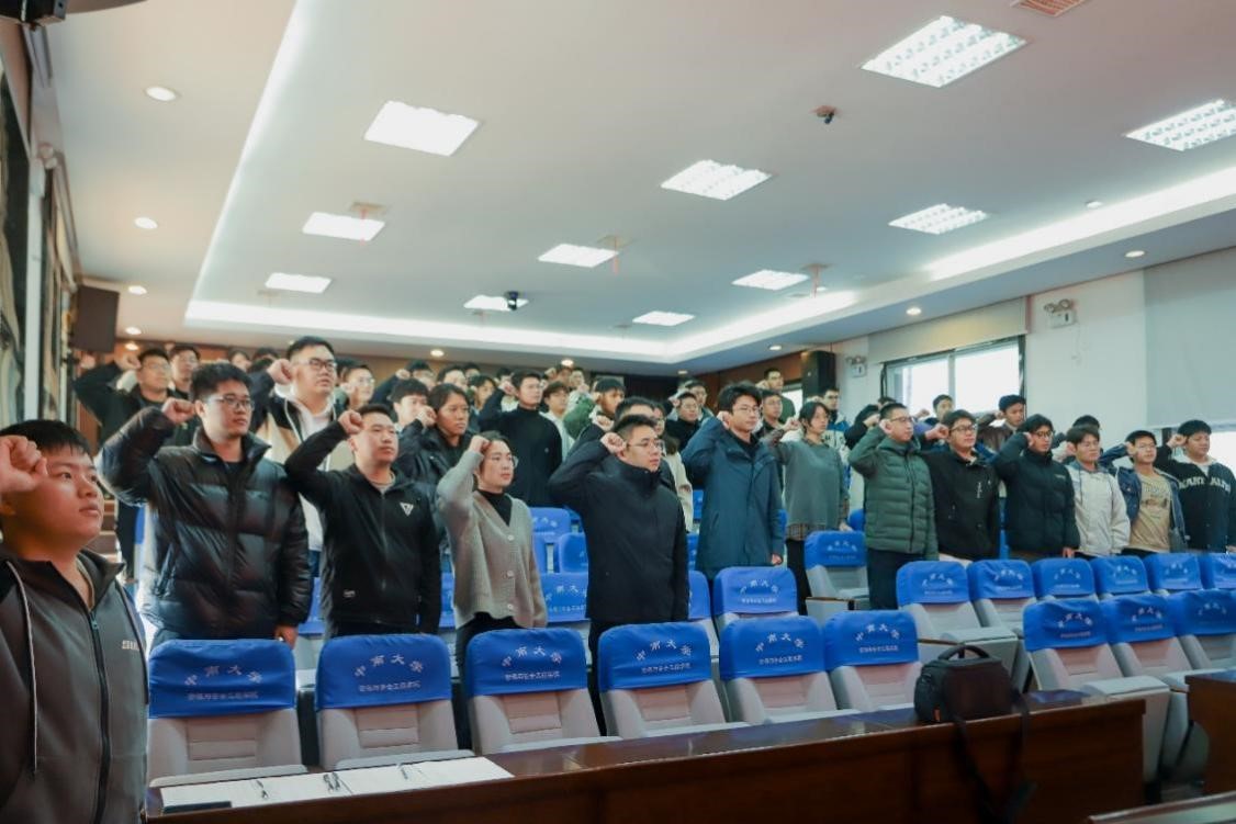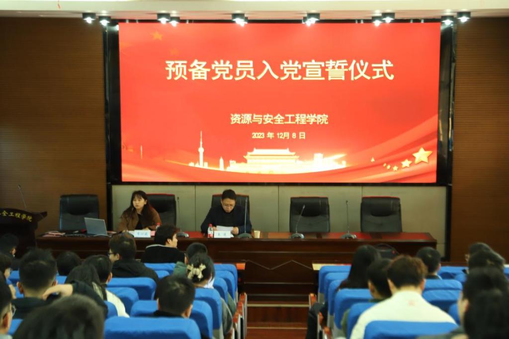 第五期预备党员入党宣誓仪式暨开班典礼于采矿楼T302报告厅隆重举行,院党委书记秦进出席,仪式由院党政办李沁媛主持。