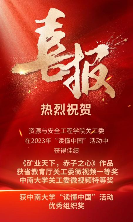 在2023年“读懂中国”活动中,学院制作的作品《矿业天下,赤子之心》获得省教育厅关工委微视频一等奖、91网