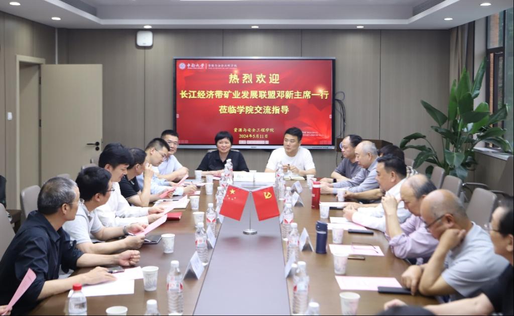 院长周子龙、副院长黄锐等学院领导在采矿楼222会议室接待邓主席一行。本次交流会由学院采矿系主任彭康主持。