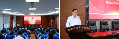 大会表决通过了选举办法及总监票人、监票人名单,宣布总计票人和计票人名单。校纪委委员、校纪检监察机构第一纪检监察室主任卜世波宣读了《关于资源与安全工程学院党委换届候选人预备人选的批复》。