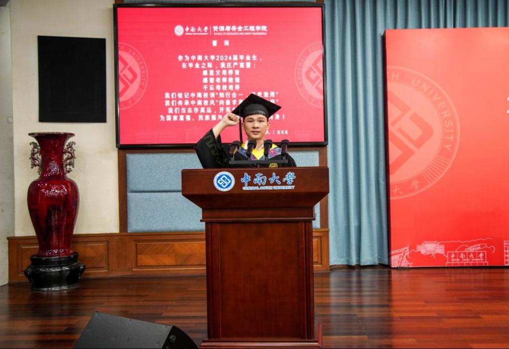 仪式在雄壮的国歌声中拉开序幕。伊始,黄锐副院长和李地元副院长分别宣读了本科生学位授予名单和研究生学位授予名单,邓红卫副院长、尹土兵副院长为学院2024届校友联络员颁发了聘书。随后,秦进书记宣读了2024届优秀毕业生名单并为优秀毕业生代表颁奖。