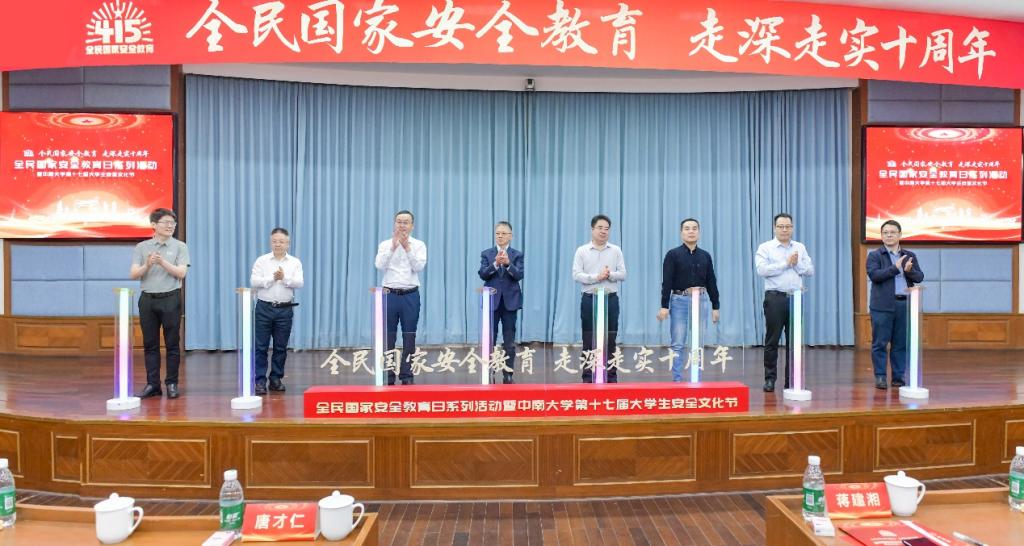 第十七届大学生安全文化节启动仪式在岳麓山校区国际报告厅举行。本次活动由学校联合湖南省委办公厅、长沙市委办公室、湖南湘江新区党政综合部共同主办,校学工部、保卫部、团委、资安院共同承办。校党委副书记蒋建湘、学工部部长欧旭理、保卫部部长张国栋、团委书记刘正宗、资安院党委书记秦进以及湖南省委办公厅、长沙市委办公室、湖南湘江新区党工委相关领导出席,14所驻湘江新区高校师生代表500余人参加。