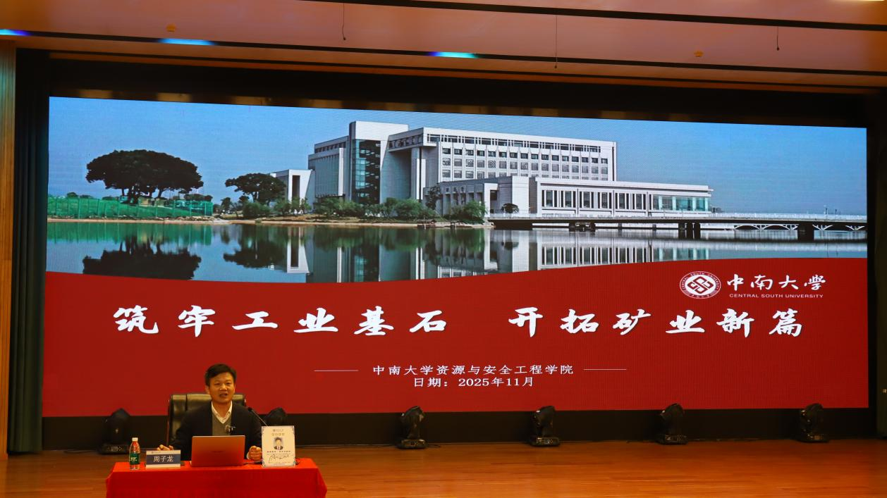 周子龙教授从矿业发展史出发,阐释矿产资源在人类文明进程中的重要地位,生动说明矿业作为“工业之母”对现代经济体系的基础支撑。围绕矿业的战略意义,他着重强调了矿产资源是国家经济命脉与国防安全的基石,进一步分析了稀土、锂、钴等关键矿产在国际竞争中的战略地位。同时,周子龙教授深入剖析了矿业转型升级的必然路径,讲述现代矿业正在走向一条更安全、更绿色、更智能、更可持续发展的道路。特别回顾与介绍了老一辈矿业开拓者的卓越贡献与当代优秀校友的实践成果,鼓励同学们要勇于担当新使命,展现新作为。